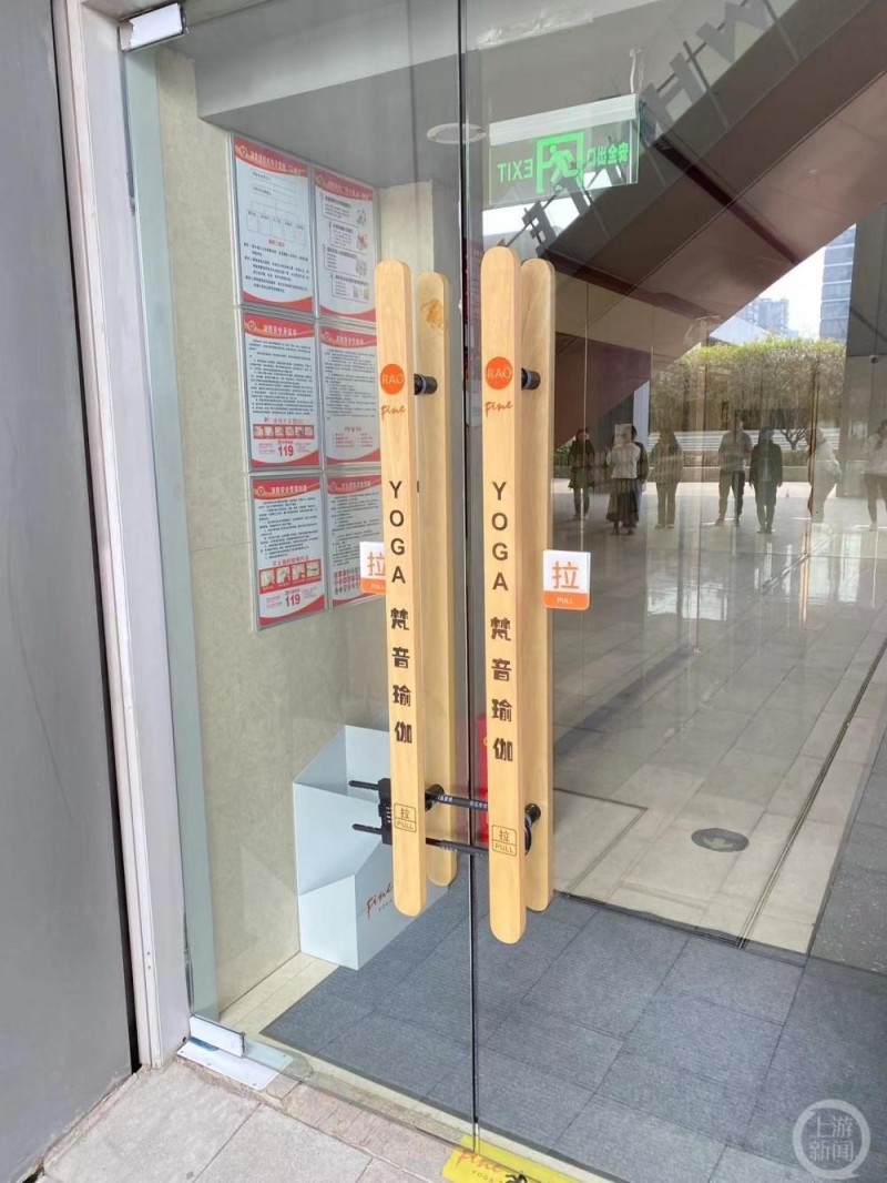 ▲2月27日,梵音瑜伽重庆九龙坡万象城店大门紧锁。摄影/上游新闻记者 冯盛雍
