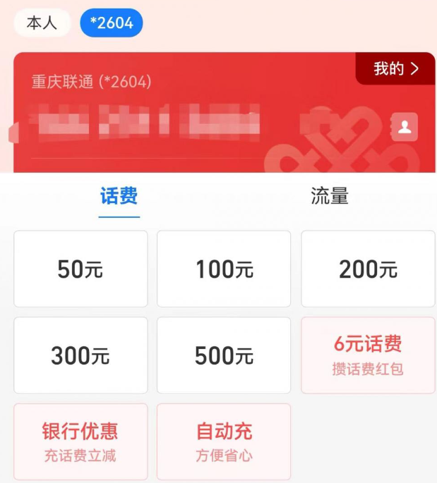 不出所料,联通号码在该支付平台上无法进行精确到个位数的充值,而且可选的最低充值金额为50元。不过通过中国电信和中国联通的官方APP,却可以进行精确到个位数的充值。