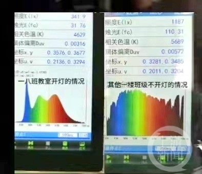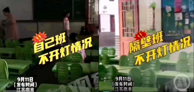 ▲家长发的视频,显示不同教室的光照对比图。 图片来源/视频截图