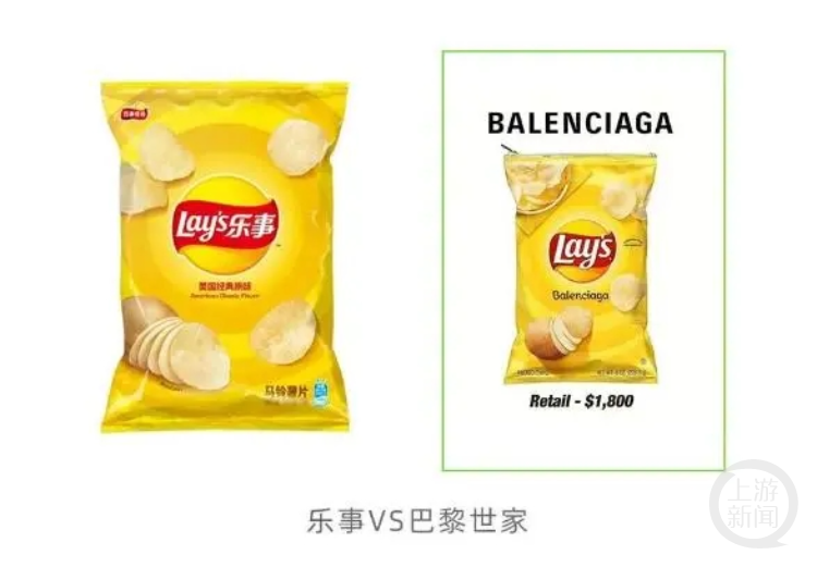就在巴黎世家2023春夏大秀上,一款产品引起热议,那就是一比一复刻的“乐事薯片袋”包包。据悉,这款包包是巴黎世家与美国乐事联名的手拿包,用皮革高度复刻乐事薯片包装袋,还贴心地推出了四种口味供大家选择——原味(黄色)、番茄(蓝色)麻辣(红色)、青柠(绿色),包包顶部设置拉链封口,内部选用银色衬里。这款薯片包售价1800欧(折合人民币约1.25万元),被网友称之为史上最贵“零食袋”。