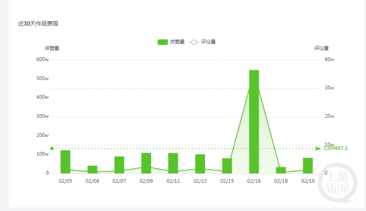 “飞瓜数据”显示,短期井喷暴涨的不止粉丝量,还有作品点赞量、评论量、转发量。数据显示,最近7天,该账号新增点赞量1116.8万、评论量42.5万、转发量228.7万。
