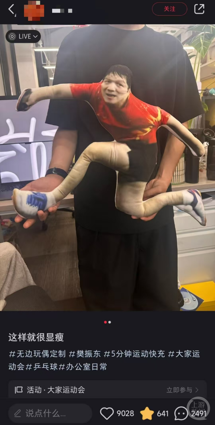 樊振东粉丝定制的人形抱枕引发热议。 网络图