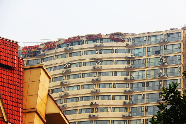 3月28日,云南瑞丽,受缅甸地震影响,瑞丽市财富广场楼顶受损。视觉中国