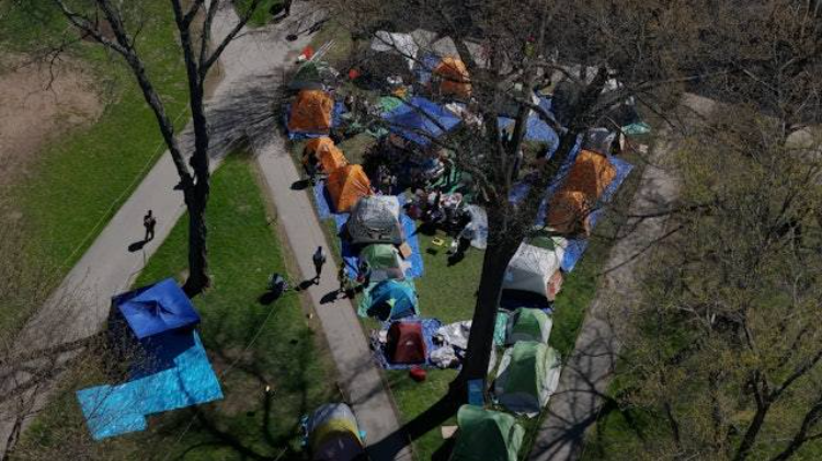 2024年4月25日,哈佛大学的学生在校内扎营,举行支持巴勒斯坦的示威。央视新闻