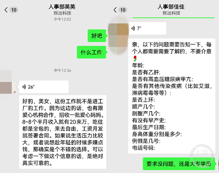 “我发出来是想给找工作的朋友避雷,别人让你代孕,坚决说不,要保护好自己的身体!”12日,上游新闻记者联系上发帖网友阳光。她称发帖信息为真实信息。