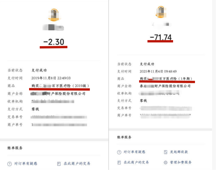 在对超20名通过社交平台、短视频平台购买百万医疗保险的消费者的采访中,上游新闻记者发现,与张女士面临相同情况的消费者不在少数,且都存在投保即被开通自动续费、在保单项目未改变的情况下保费持续上涨的情况。除微某百万医疗险外,还涉及众某、悟某等多款互联网保险项目。“我是今年国庆节休假看到我母亲开通了首月1元的保险,问她,她也不知道已经自动续费。后来查了银行卡流水才发现已经扣了近一年。”上海市民小郭说,母亲告诉她广告是刷视频的时候跳出来的,自己试了几次没关掉,就填了个人信息花了1元钱投保。因为没有绑定银行卡消费提醒,所以老人对每个月扣费的情况并不知情。采访中还有多名老人表示,经常会在刷视频的时候弹出来广告,且有消费者称,曾在停车缴费时无意间开通了百万医疗保险。