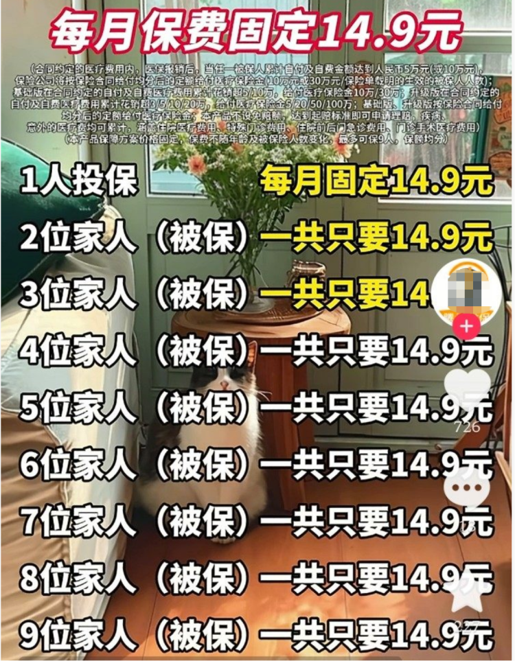 但在实际情况中,虽然“0”元投保的情况有所减少,但在此前多家互联网保险公司被通报、罚款的情况下,“全家9.9元投保”“每月固定14.9元”等宣传屡见不鲜。