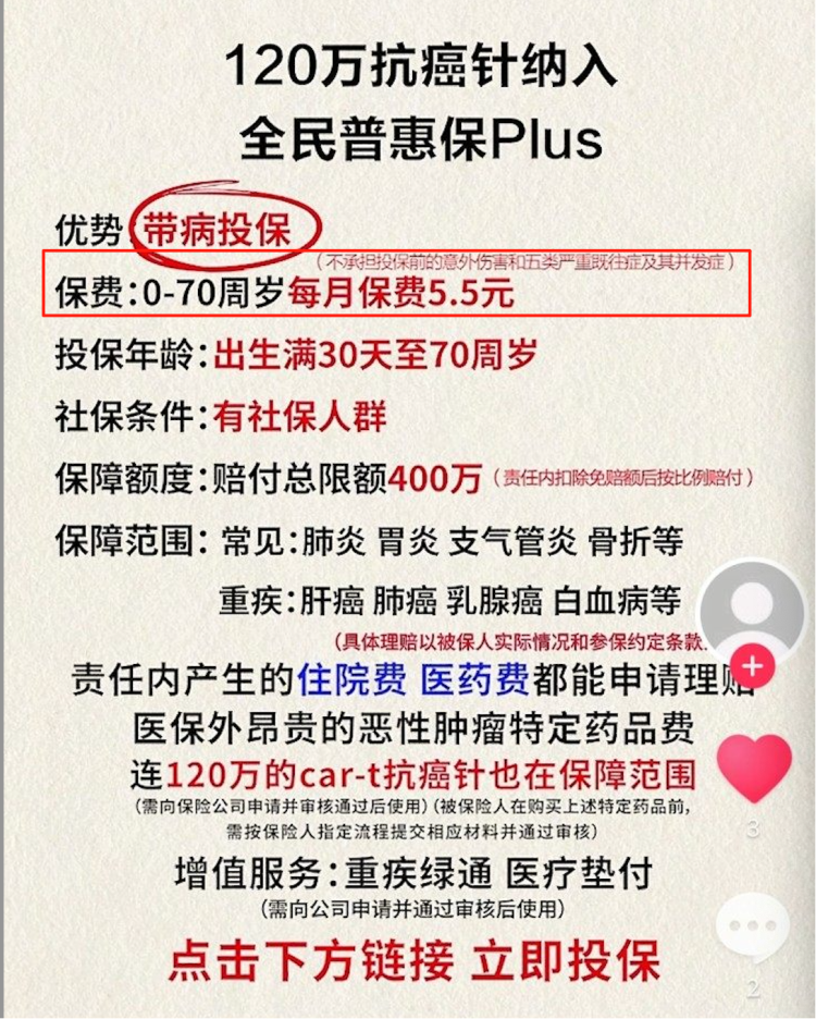 多名保险业内人士表示,目前部分保险公司通过“每月1元起”“限时特惠”等方式诱导消费者投保,实际上是在打监管擦边球。投保时很少会有消费者看到广告下的小字,“众某保险就曾在广告中提到1.6元可以投保600万元,但在放大的文字下面还标注有‘免赔额5万元’‘报销比例最高50%’的小字。按照这样的赔付比例计算,在医保报销的情况下,除重大疾病很少会有投保者能拿到理赔款。部分重大疾病还不在报销范围内。这些内容大部分没有保险知识的消费者很难发现其中的陷阱。”保险业内人士称。