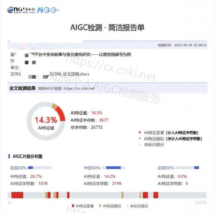 眼下,不少高校为了防止AI代写毕业论文,在原有查重检测的基础上,增加了AIGC检测(人工智能生成内容检测)的要求。于是,部分学生购买AI工具,试图用魔法打败魔法,却发现“虽然AI率下来了,读起来却像白开水,被导师批评逻辑不通,退回重改。”也有学生“吐槽”说,他的一篇论文经导师指点修改后,AI率不减反增,从10%飙升到80%。