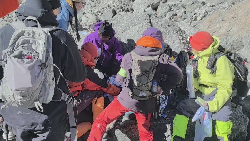 12月21日,一男子在田海子冰川徒步时突然休克,众人正在救援。网友图