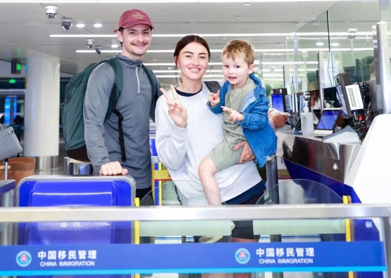 12月18日,在海口美兰边检站,入境旅客在排队等候边检查验期间留影。新华社图