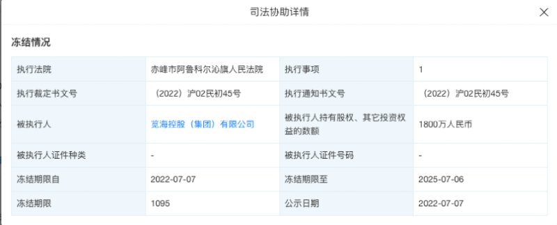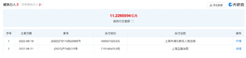 今年6月21日,密春雷、上海览海投资有限公司、览海控股(集团)有限公司新增被执行案件,执行标的约7.19亿元,执行法院为上海市金融法院,案号均为(2022)沪74执215号。9月19日,览海控股(集团)有限公司新增一则被执行人信息,执行标的约4.04亿元,执行法院为上海市浦东新区人民法院。