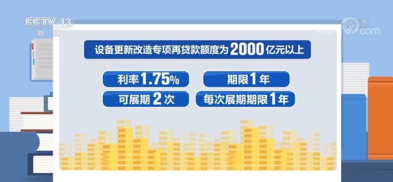 设备更新改造专项再贷款额度为2000亿元以上,利率1.75%,期限1年,可展期2次,每次展期期限1年,发放对象包括国家开发银行、政策性银行、国有商业银行、中国邮政储蓄银行、股份制商业银行等21家金融机构,按照金融机构发放符合要求的贷款本金100%提供资金支持。