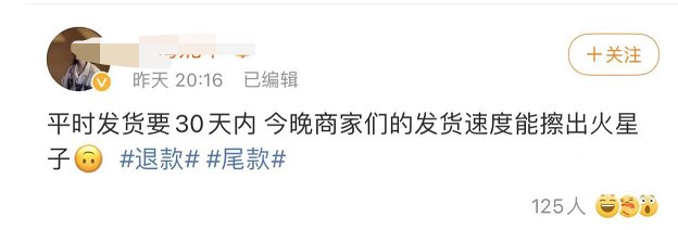 与往年“定金”“尾款”热度相比,有网友说今年双11,商家简直完全不给退款留机会。