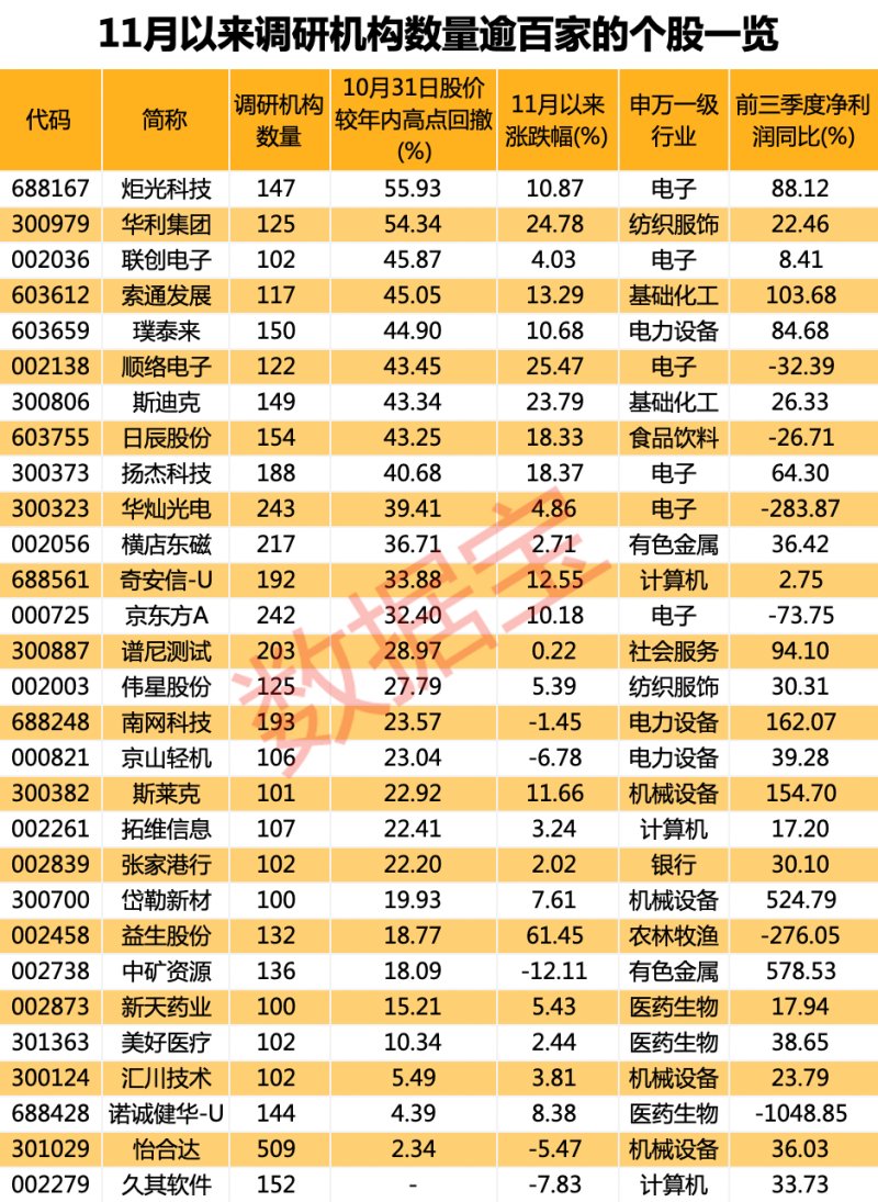 机构调研选择偏向于此前股价有一定回调的公司,这样的公司安全边际更高。因此,不少三季报业绩亮眼的公司成为机构关注的焦点。