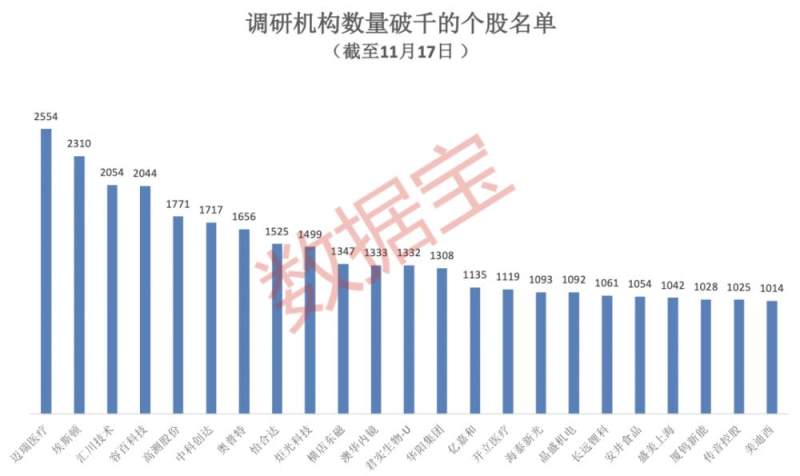 迈瑞医疗今年以来共获2554家机构调研,是获参与调研机构数量最多的公司;埃斯顿、汇川技术、容百科技等参与调研的机构数量均超2000家。