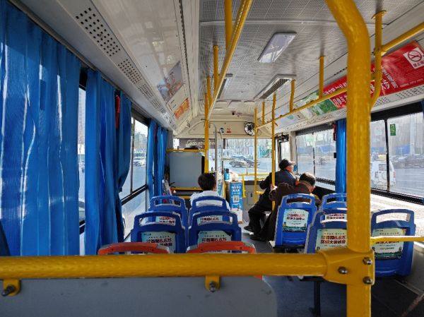 图:全程15公里仅有5名乘客的公交车(张英/摄)