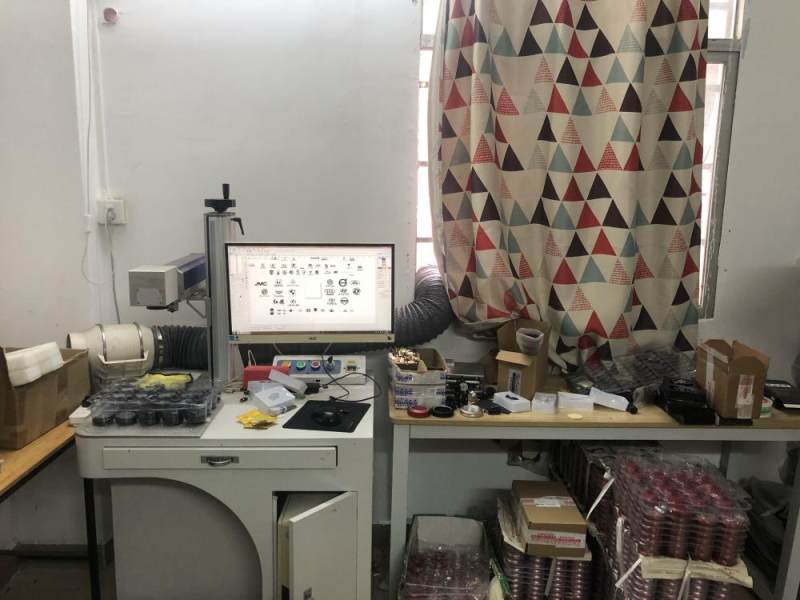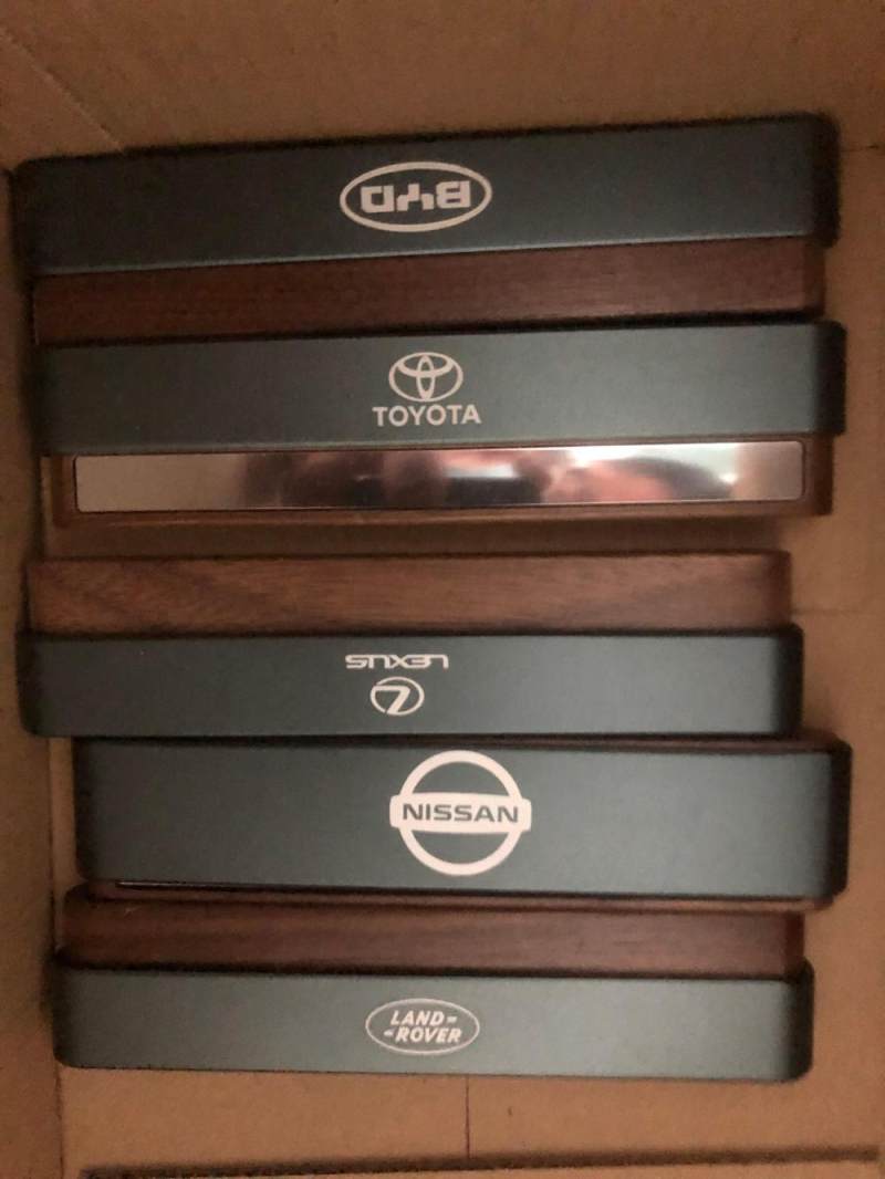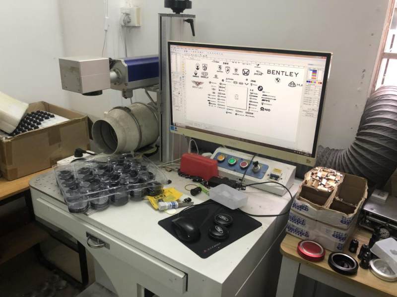 二楼的仓库内有一台“打标机”,各种车标可现场打印。