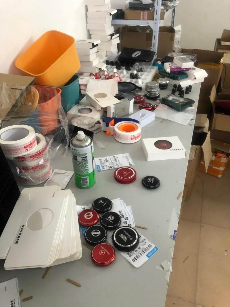 3月9日晚,经过清点后,执法人员将部分印有车标的产品进行了分类打包及查扣,“一辆小货车都快装满了”。随后,当地公安机关对涉案场所进行了查封。澎湃新闻从天河区市场监督管理局获悉,现场检查发现上述经营场所有涉嫌侵犯奥迪、奔驰商标的车用香水、垃圾桶等商品一批,未标明商标的车用垃圾桶、纸巾盒等商品一批,和制作工具刻录机一台。