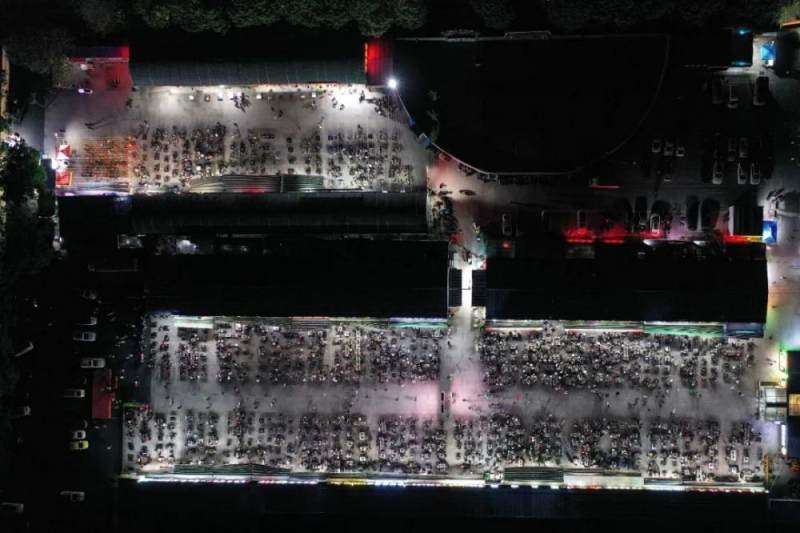 位于淄博市临淄区的临淄烧烤大院(5月8日摄,无人机照片)。图片来源:新华社 朱峥 摄