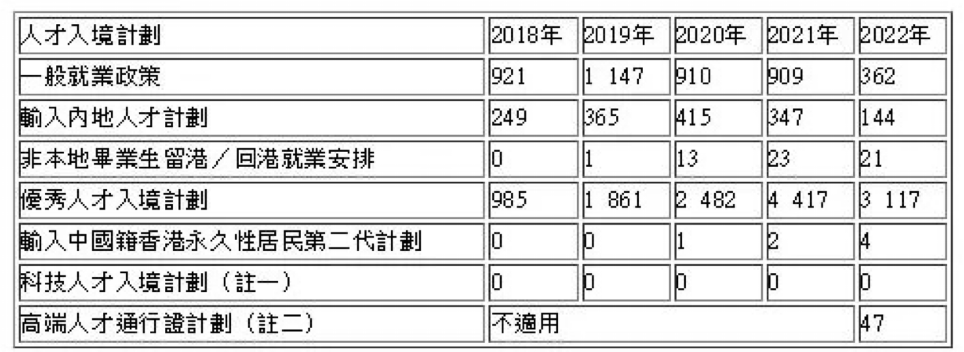 香港“抢人才”大踏步之时,通过以上人才输入计划的永居申请拒签个案也在减少,劳工及福利局局长孙玉菡日前在立法会会议上书面答复议员提问时,介绍了过去五年特区政府多项输入人才计划的申请获批及被拒情况。数据显示,2022年,大部分人才入境计划的被拒个案总量都有大幅下降。此外,通过“非本地毕业生留港/回港就业安排”计划最终取得香港永居身份的人数,在去年创下5年新高。