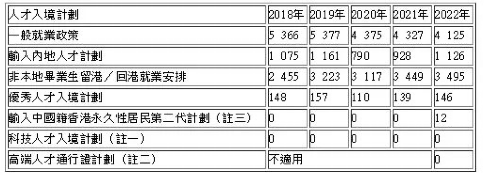 根据各项人才入境计划获批来港而最终取得居留权人士的统计数字表列