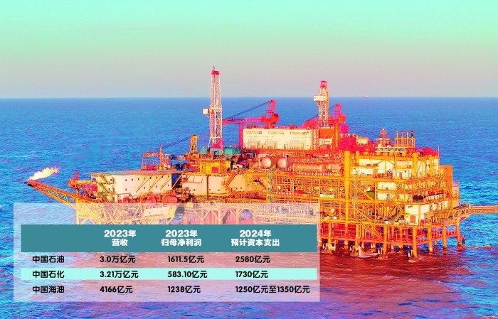 在资本性开支方面,三家公司继续保持强劲势头。中国石油预计2024年资本支出为2580亿元。中国石化2024年计划资本支出1730亿元,主要用于济阳、塔河等原油产能建设、镇海炼化扩建、广州石化技术改造、茂名技术改造等项目建设、综合加能站网络发展、现有终端销售网络改造等。中国海油预计今年资本支出为1250亿元至1350亿元,产量目标为700百万桶油当量至720百万桶油当量,储量替代率目标为不低于130%。