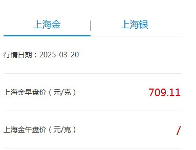 据暂行办法,黄金积存产品最小业务单位为1克。上海黄金交易所(下称上金所)官网显示,3月20日,上海金早盘价为709.11元/克,超过700元/克。