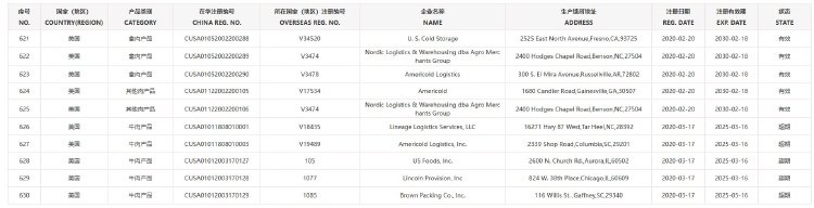 作为2020年中美第一阶段经贸协议的一部分,这些美国肉类加工企业的注册有效期持续到2025年3月16日。在中国海关总署网站上,相关猪肉和家禽出口企业的注册状态已得到更新,有效期延长到2030年。但大量美国牛肉出口企业的注册已经失效,注册状态显示为“超期”。