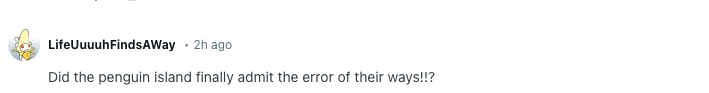 有网友反讽称,“是企鹅岛终于承认错误了吗?” ↓