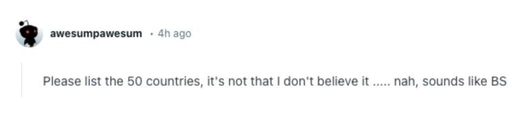 “请列出这50个国家,不是我不相信……而是这听起来太像无稽之谈了。”