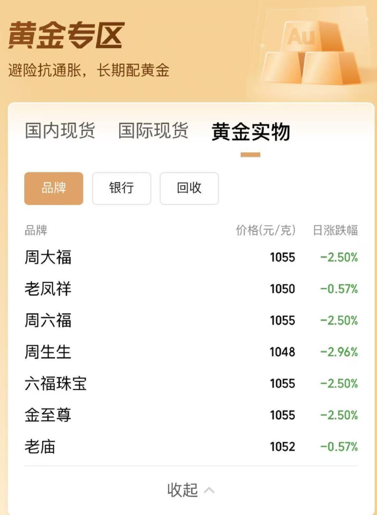 红星新闻注意到,4月23日,国内多品牌的金饰价格也开始回落。截至23日下午6时,周生生足金饰品标价1048元/克,较前一日1080元/克的价格下调了32元/克,日涨跌幅最高。周大福、周六福、六福珠宝等足金饰品均标价1055元/克,日跌涨幅均较前一日1082元/克的价格下跌了27元/克。