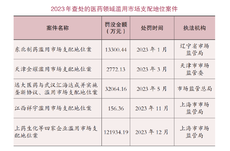 去年6月,根据市场监管总局(国家反垄断局)发布的《中国反垄断执法年度报告(2023)》,医药领域共查处滥用市场支配地位案件5件,罚没金额合计17.02亿元。其中4起都为原料药市场垄断,另外1起为短缺药不公平高价行为垄断调查案件。