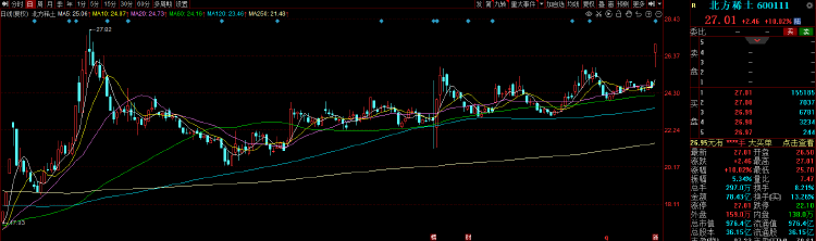 业绩预告披露后,今日,北方稀土股价涨停,截至收盘,该股报收27.01元/股,收盘时仍有超15万手封单封住涨停。