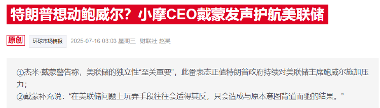 华尔街似乎也感受到了白宫可能宣战美联储的迹象。昨日,摩根大通CEO杰米·戴蒙(Jamie Dimon)在财报电话会上警告称,美联储的独立性“至关重要”。
