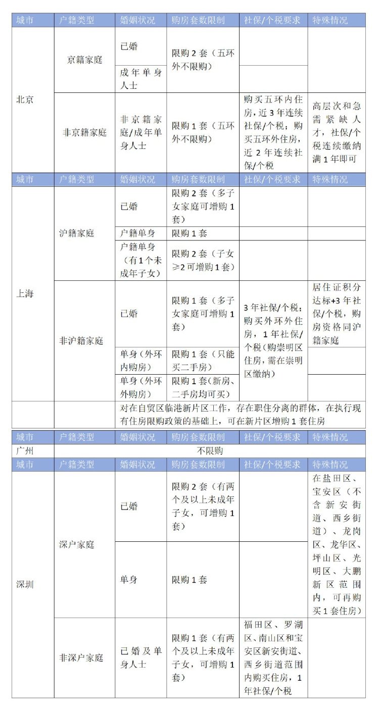 以下为一线城市限购政策梳理: