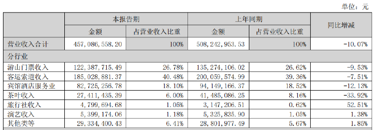 峨旅股份公司营业收入构成。图表来源于峨旅股份公司半年度报告