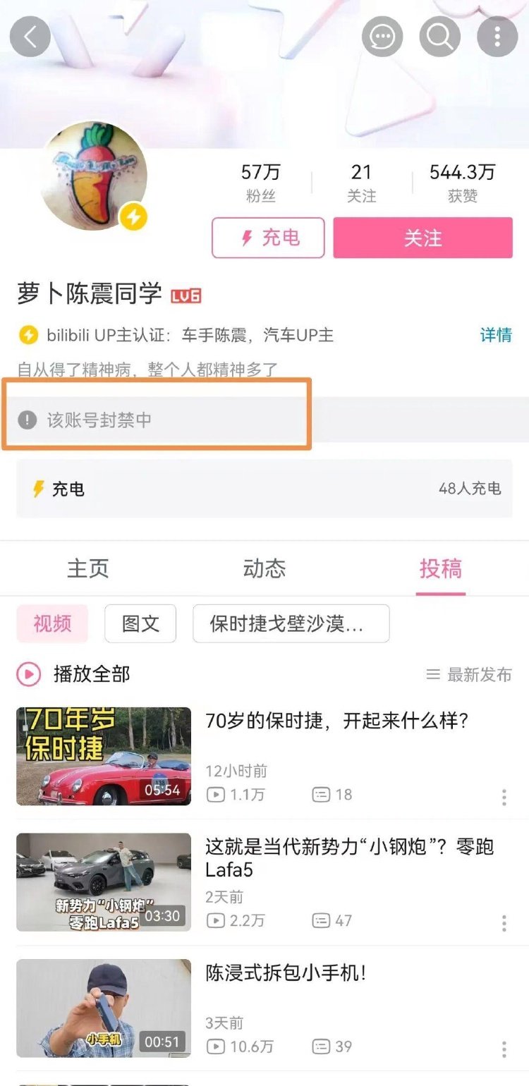 数据显示,陈震在微博有1014万粉丝、抖音1074.3万粉丝、B站57万粉丝、小红书72.5万粉丝、快手201万粉丝,全网粉丝已经超过2400万。公开资料显示,陈震是知名车评人,原汽车之家金牌主持人,具有多年汽车评测类视频主持经验,评测视频涵盖上百个品牌车型,主持风格多样。其代表作有《越野路书》《震震有词》《萝卜实验室》等。