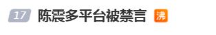 12月5日凌晨,陈震的多个社交媒体平台账号被禁言,随后#陈震多平台被禁言#相关话题登上微博等热搜榜。