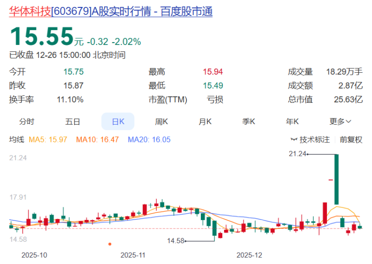 华体科技报收15.55元,日涨幅-2.02%,换手率11.10%,周涨幅-19.47%,今年以来涨幅18.07%。