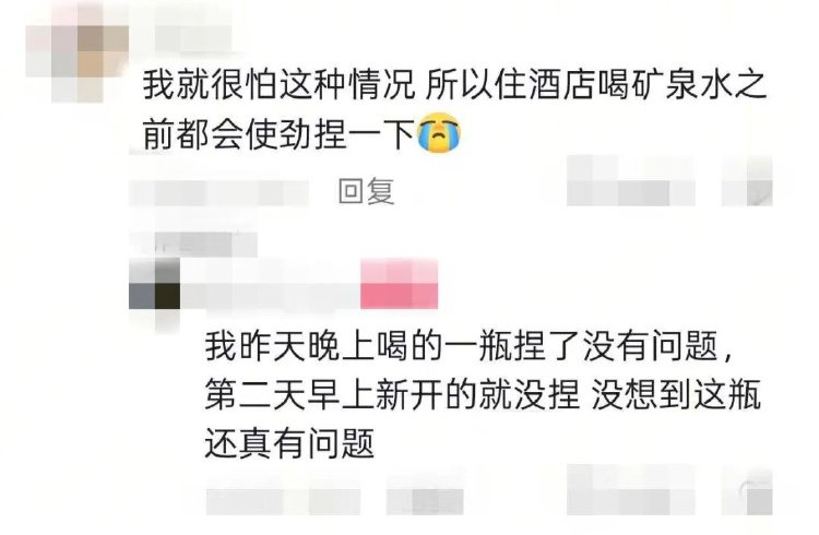画面显示,一瓶矿泉水有水流喷出,视频发布者称“可怕至极”,视频引发网友讨论,有网友称感到害怕,还有网友表示在酒店喝瓶装水时会习惯性捏一下瓶子,不过另有网友称,这种情况是运输过程中矿泉水瓶薄所致。