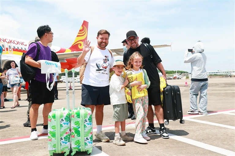外国游客抵达三亚凤凰国际机场。三亚日报图