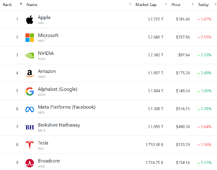 大型科技股涨跌不一,(按市值排列)苹果跌3.67%,微软跌0.55%,英伟达涨3.53%,亚马逊涨2.49%,谷歌C涨1.02%,Meta涨2.28%,特斯拉跌2.56%。