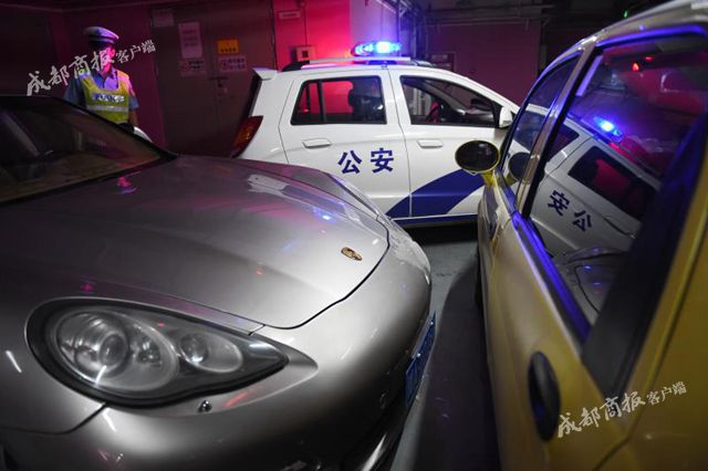 成都商报客户端记者在现场看到,民警用自己的私家车和一辆警车将保时捷正前和左前方所有通道堵死。“我们两个小时换一班,守到天亮。”一位民警说。