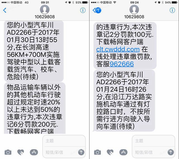从2017年起,刘波开始收到该车在外省的违法行驶记录。“第一次收到违法短信是2017年1月24日,我专门去交管局查,证实了车辆被套牌的事实。”成都商报客户端记者根据他提供的短信发现,过去一年多,该车先后在上海、长沙、广州等地出现。刘波说,“交警经过调查,把这些异地违法记录都注销了,但一直没有这辆套牌车的下落”。