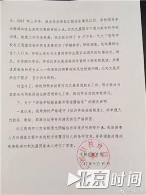 刘文展:关于这一点,我想是学校的水军所为吧。教育局的回复本身就错漏百出,我和同学没有矛盾。