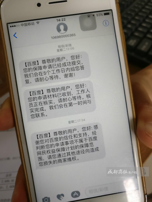 另一方面,他介绍,“百度网民权益保障计划”针对的是网民,仅限于自然人,“丁女士的遭遇是企业行为,公对公的,所以不在保障范围。”