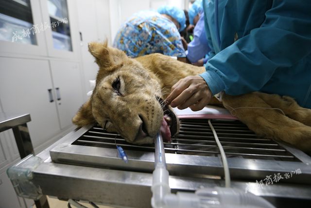 10日上午11点半左右,狮子被推进手术室。手术一直有条不紊地进行,下午1点左右,手术进行到缝合阶段,突然发生意外,狮子出现麻醉不耐受,医生赶紧进行紧急抢救,注射强心针并实施心肺复苏。