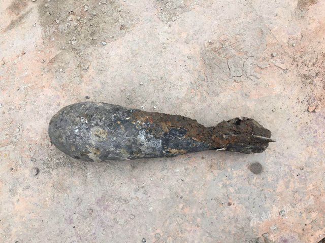 “我挖起来以为是一个铁巴,看到有一点尖,就用锄头勾出来的。”第一个发现炮弹的是施工地的丁伟丁师傅,今天上午11点正在施工挖一个污水工作井。“当时我还拿到手上看了看,全是泥巴和铁锈,后来拿上来周围人才说是炸弹,赶紧报警了。”丁师傅估计,是附近回填泥巴无意中带的炮弹。35岁的丁师傅干施工10多年,第一次挖到炸弹,“但也不害怕,这看起来锈迹斑斑也不得爆”。