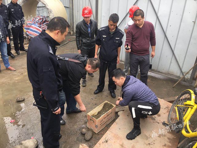金牛警方迅速出警,到达事发地一环路北四段102号地铁6号线施工地,报警人丁师傅是地铁施工地的一名工人。“报警人透露,在施工作业中用锄头挖到一枚炮弹。”曹家巷派出所副所长贺林透露,发现炮弹地点在地面下1.5米到2米深位置,“是一枚迫击弹,目测40cm长,直径5cm-7cm左右”。